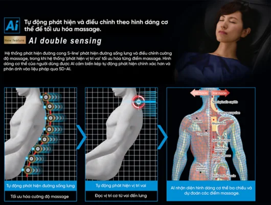 • Công nghệ AI Double Sensing dò tìm huyệt đạo và nhóm cơ với độ chính xác rất cao